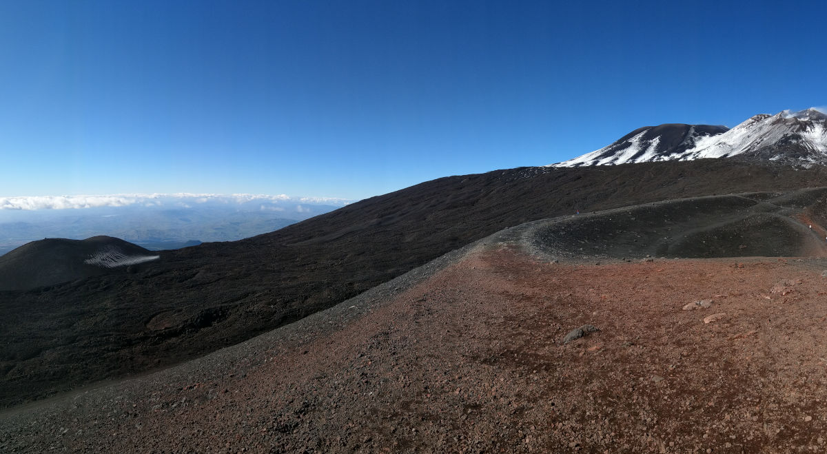 Rifugio Giovanni Sapienza is a convenient starting point to explore Etna. Paths lead from the parking area into an unearthly surrounding of Crateri Silvestri, Monti Calcarazzi and other larger and smaller cones. The experience is like walking on another planet.
