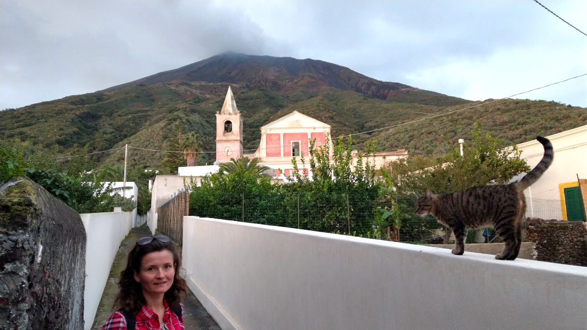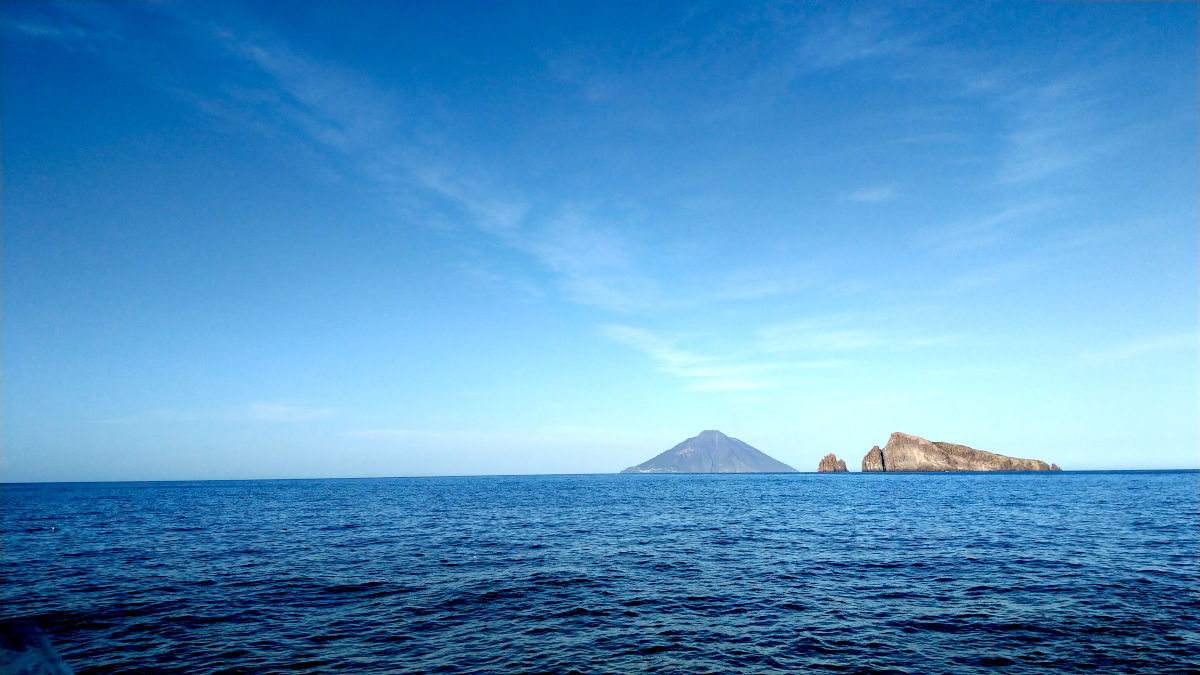 From Etna we set out for Aeolian islands, a stretch of volcanic islands off the north coast of Sicily. Stromboli volcano seen from the ferry exemplifies a perfect mountain as drawn by little children.