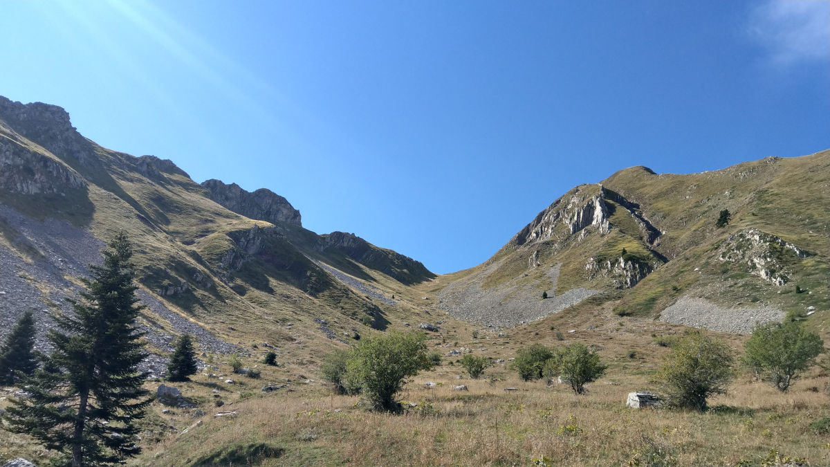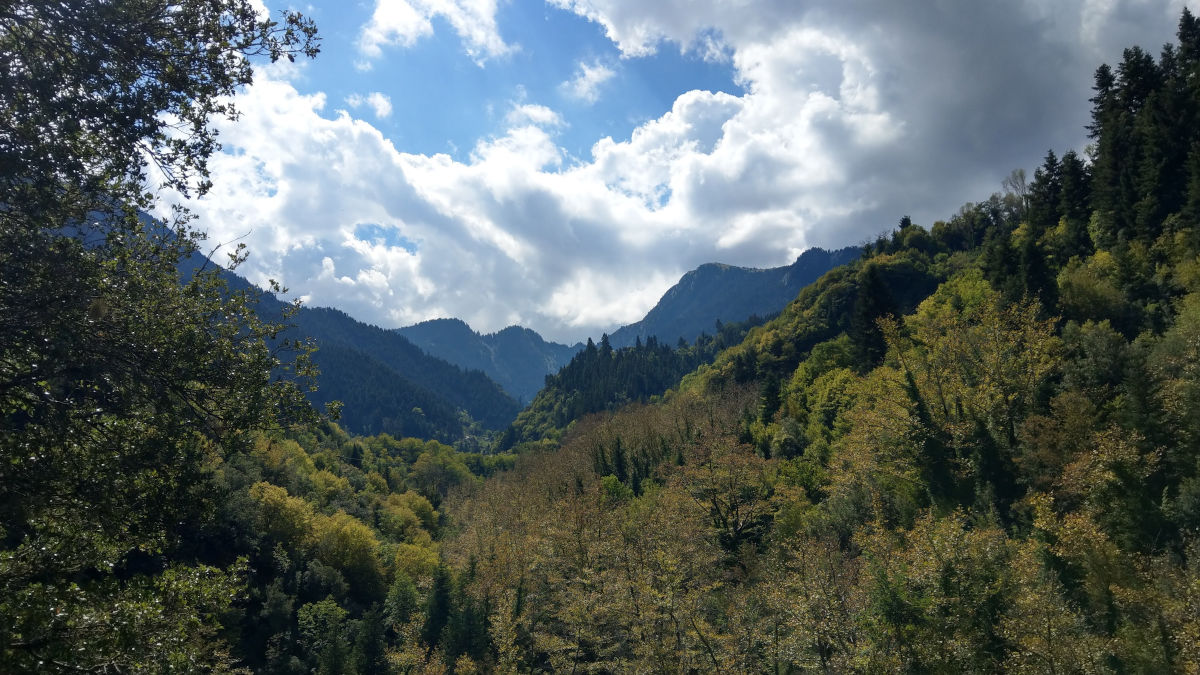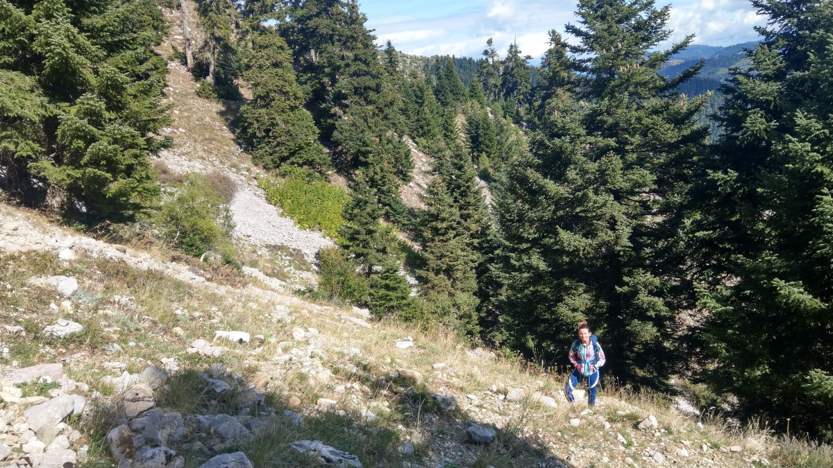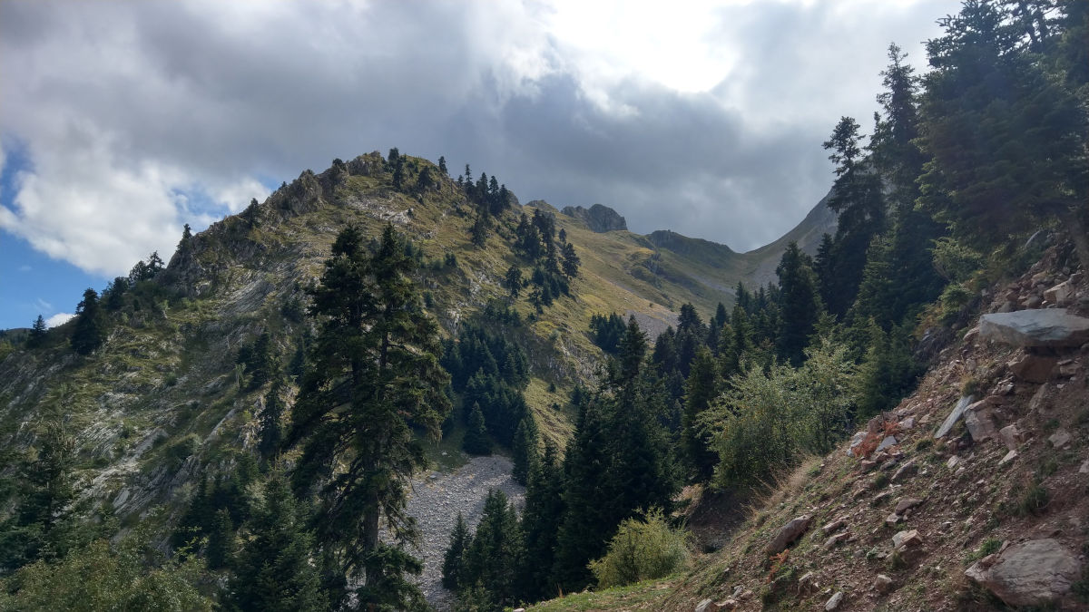 We were surprised by a lush vegetation on the slopes of mountain Chelidonia (1975 m). A partly cloudy day and distant showers added the beautifull scenery.